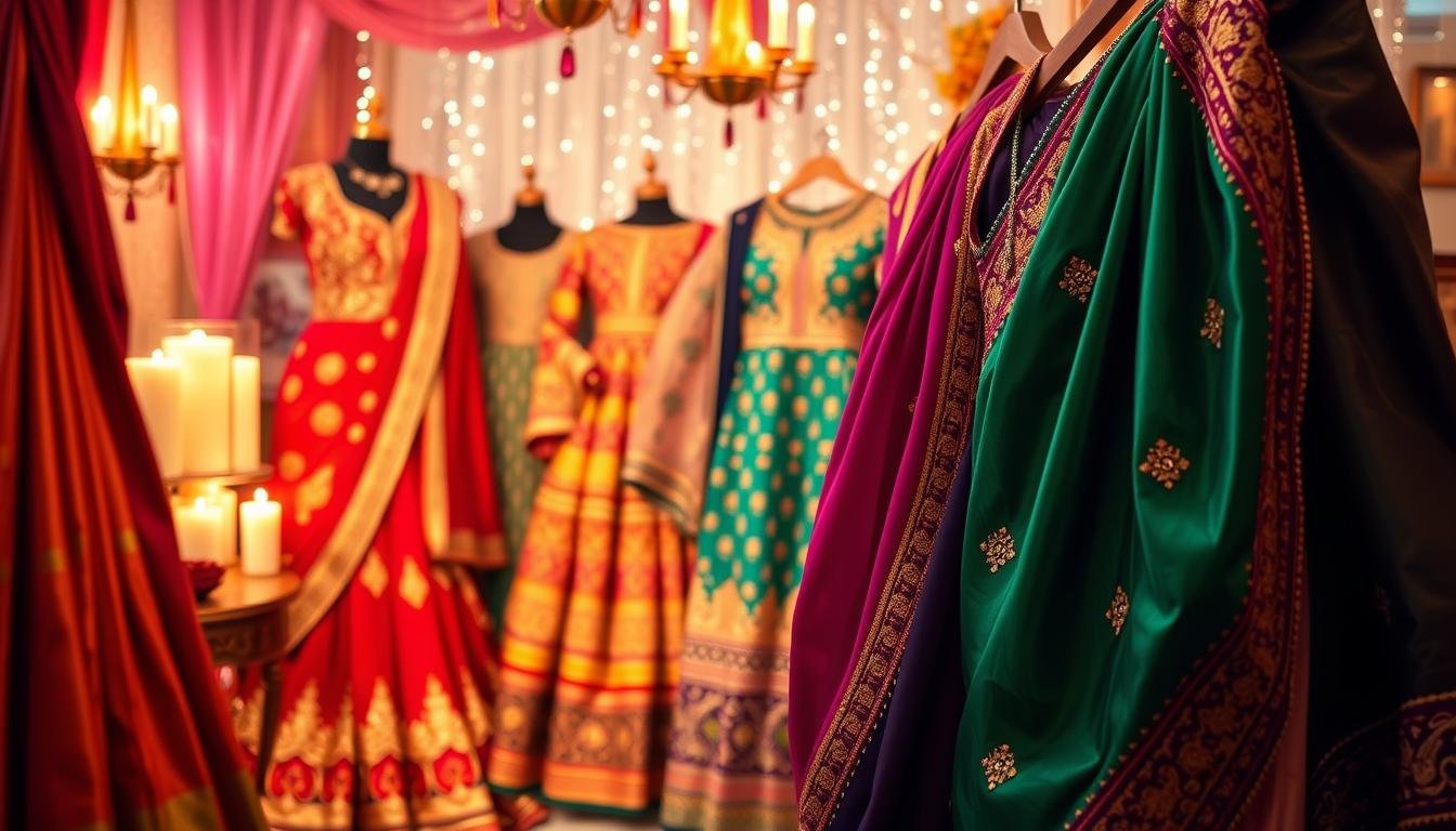 I focus on breathable weaves, glossy finishes, and restrained embellishment so garments last through long pujas and still photograph well.
